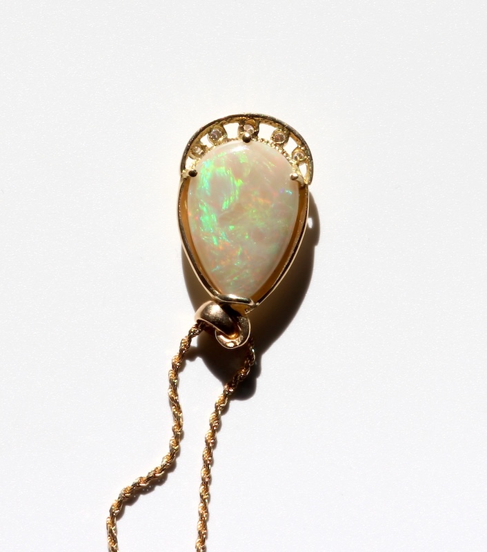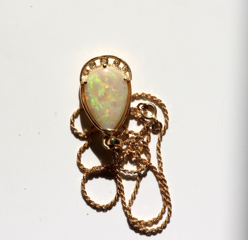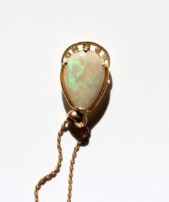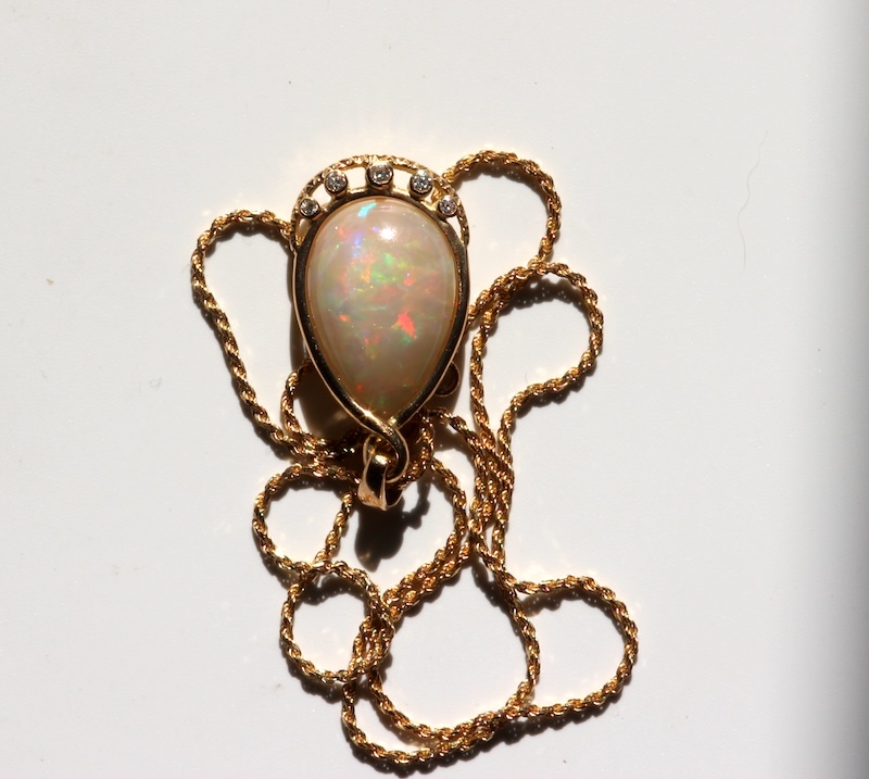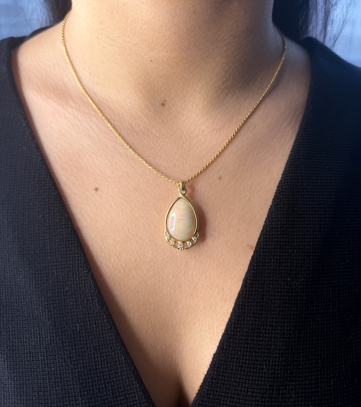 Chaine et Pendentif en Or 18K Opale Noble Ethiopienne & diamants